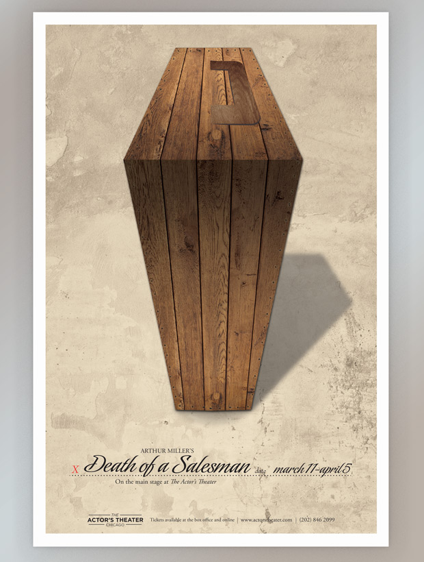 This theater poster for Arthur Miller's Death of a Salesman is a simple illustration representing the main story of man's loss of identity and his inability to accept change within himself and society. The purpose was to be simple yet thought-provoking.