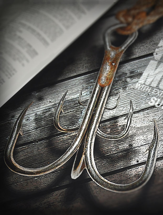 River Monsters, on Animal Planet, follows extreme angler Jeremy Wade, as he scours the planet looking for monstrous fish and animals. For these advertisements, I rendered illustrations of extreme hooks and lures that would be used to hunt these monstrous creatures.